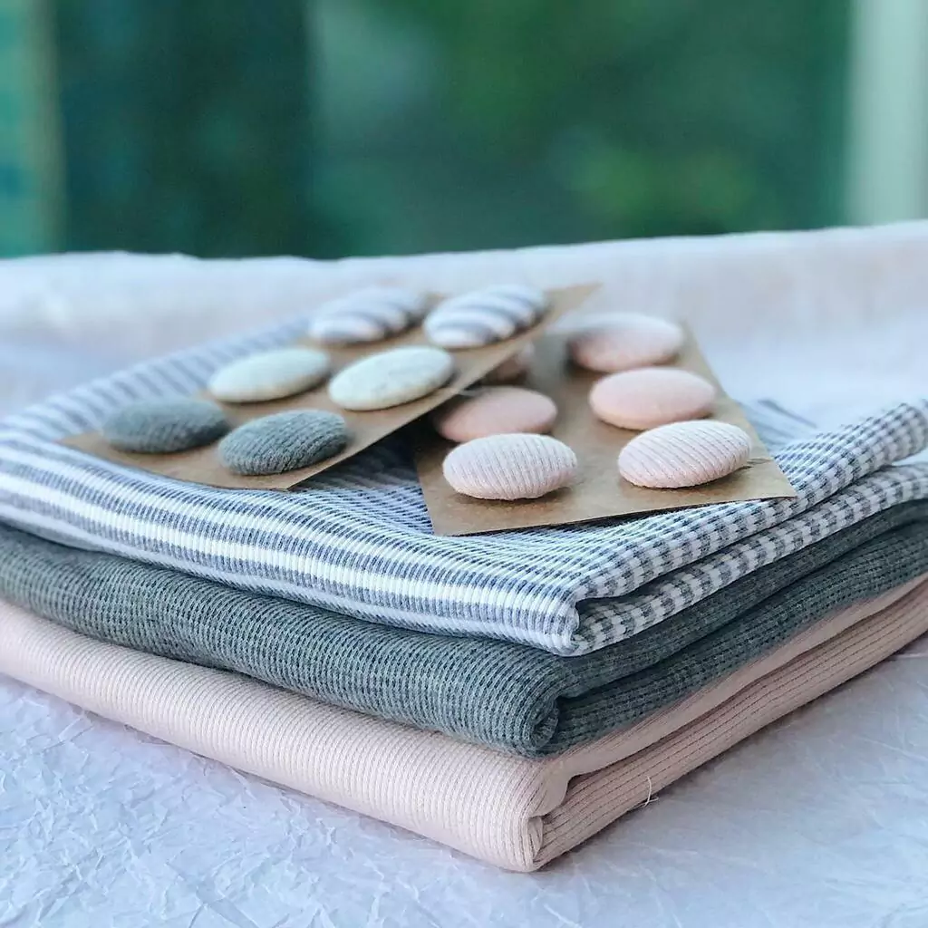 Os Botões são cobertos principalmente por Linho, tricoline, malha punho, etc.