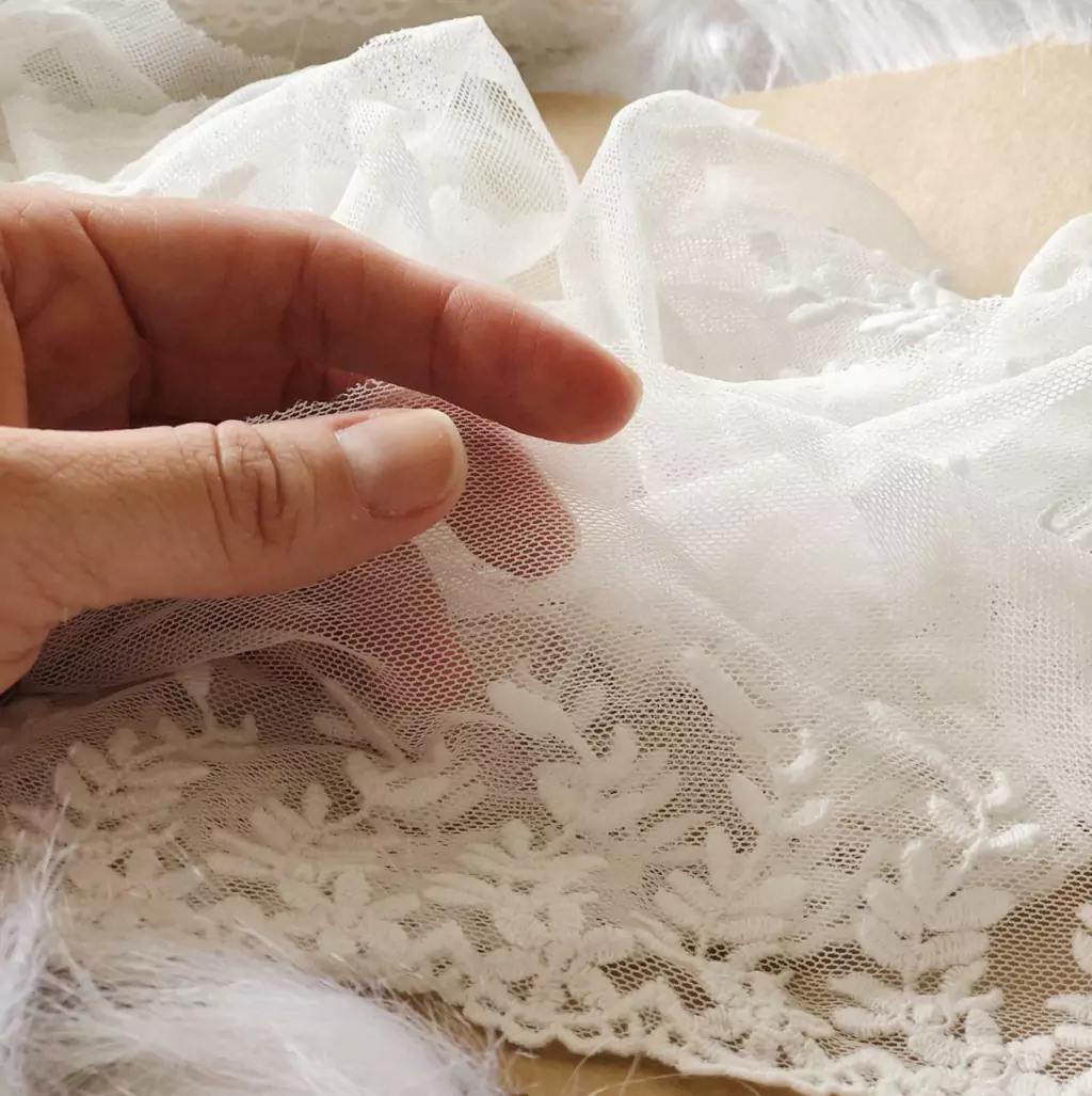 Essa é a renda de Tuli que uso para fazer a batinha das lindas bonecas trigo.
